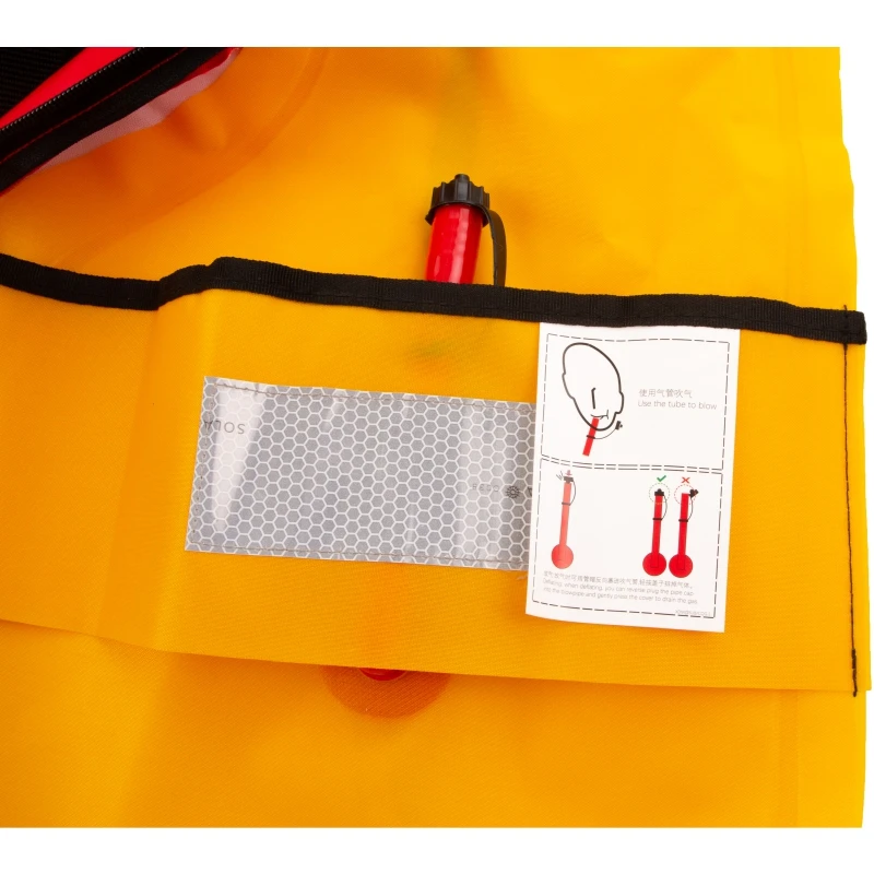 Equipped with both self-inflating and manual activation for immediate flotation when needed.